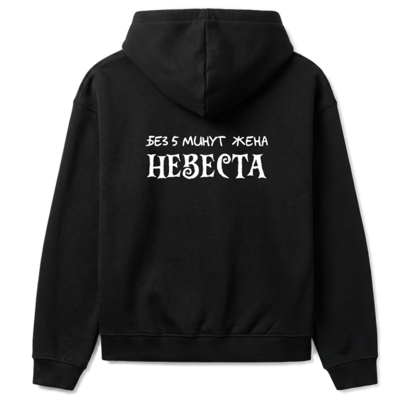 Но самое главное — это принт, посвящённый одноимённой песне! Яркий и стильный дизайн худи «Без пяти минут невеста» станет отличным способом выразить свою любовь к музыке и подчеркнуть индивидуальность.